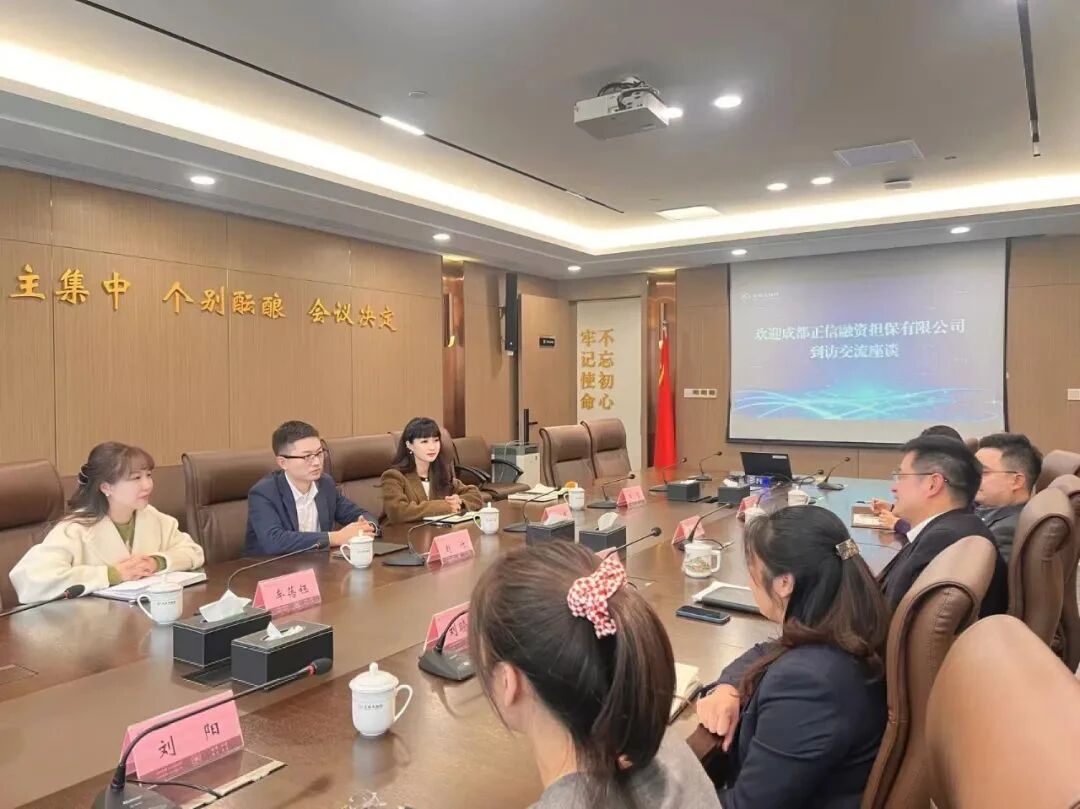 11月20日,成都正信融资担保有限责任公司董事长赵竹、总经理陈爽一行赴成都市融资再担保有限责任公司交流学习,再担保公司总经理祁军操、副总经理冯锋及相关人员参加座谈。